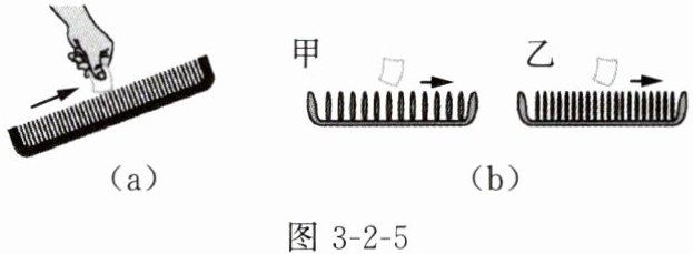 次发出的声音的响度较大。如图3-2-5(b)所示,用薄塑料片在甲、乙两把塑料梳子的齿上用同样的速度划两次,则乙