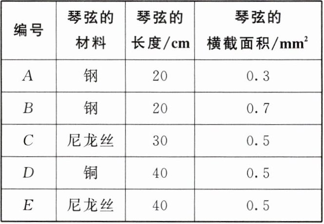 |编号|琴弦的材料|琴弦的长度/cm|琴弦的横截面积$/mm^2$|