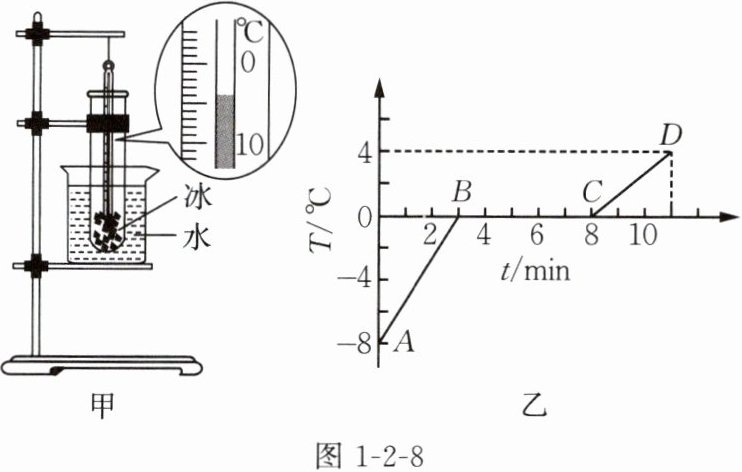 (3) 图 1 - 2 - 8 乙是小丽根据实验数据作出的冰在加热过程中温度随时间变化的图像,分析可知:冰是