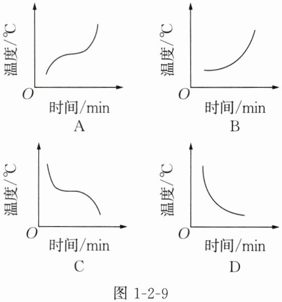 5. 现代建筑业出现一种新型材料,这种材料在低于 15℃时为固态,在 15℃时开始熔化,超过 40℃时完全熔化。把这种材料制成小颗粒,均匀混入水泥等材料中,制成地板或墙板。图 1 - 2 - 9 中能表示这种材料凝固过程的图像是(