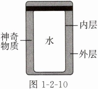 7.【时代科技】市场上有一种“55℃保温杯”,如图1-2-10所示,外层为隔热材料,内层为导热材料,夹层间有“神奇物质”,这种物质的熔点为55℃。将100℃的开水倒人杯中,旋紧杯盖,左右摇晃十多下,放置约1min后拧开杯盖,杯中原本的开水快速降温至可饮用的温水。当水喝完后,再将凉水倒人杯中,旋紧杯盖,同样左右摇晃十多下,约1min后再拧开杯盖,杯中原本的凉水也会快速升温至可饮用的温水。下列解释不正确的是()。