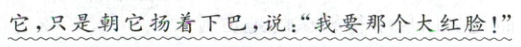 ,从“我要那个大红脸!”可以体会到“我”渴望拥有