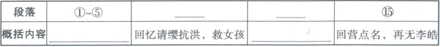 2. 第一行:⑥~⑧ ⑨~⑭ 第二行:谎称会潜水,跳入洪水 得知牺牲,谎称去帮助他人