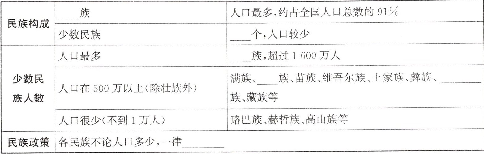 1. 民族数量:在我们伟大祖国辽阔的土地上,共同生活着