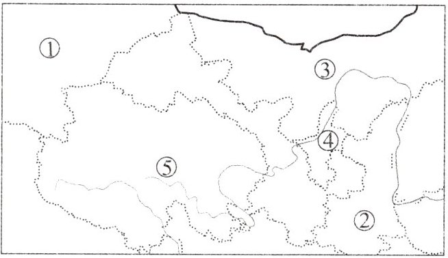 (3) 喜爱弹奏冬不拉的少数民族哈萨克族主要分布在图中的