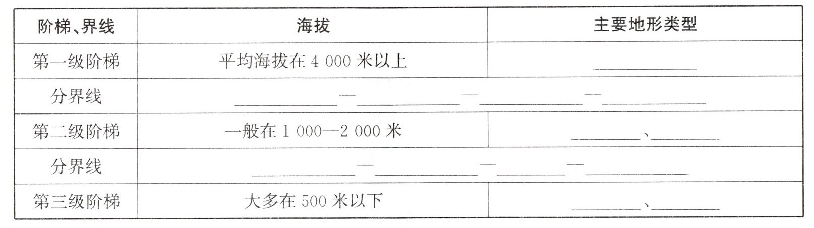 )A.西高东低,呈阶梯状分布