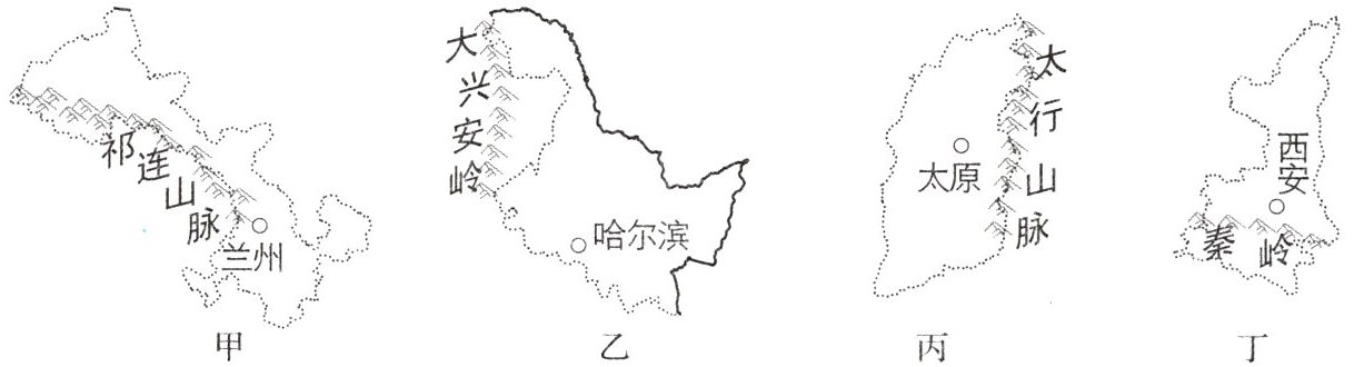 读甲、乙、丙、丁四省级行政区轮廓图,完成第5~6题。