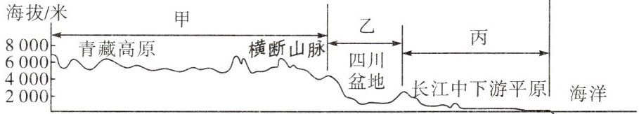 A. 甲为第三级阶梯,平均海拔在4000米以上