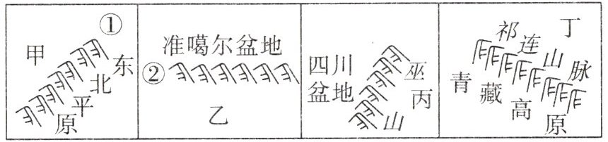 D. 丁为长江中下游平原