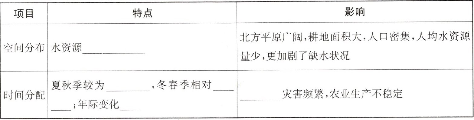 2.南丰北缺 丰富 不足 大 水旱