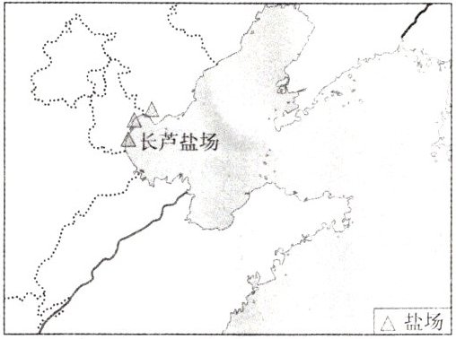 卤晒盐、水下水产养殖的“盐光互补”新型复合产业模式。下图为长芦盐场位置图。据此完