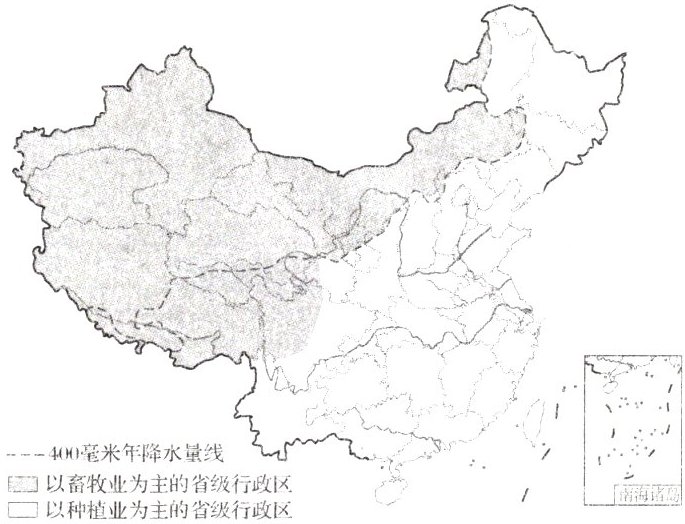 农业是我们的衣食之源,生存之本。我国地域辽阔,自然环境复杂,农业的地区差异显著。读我国主要的畜牧业区和种植业区分布图,完成第1~3题。
