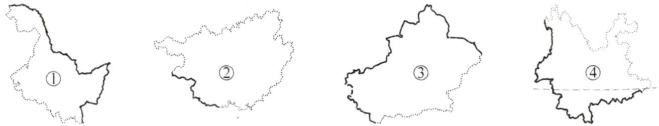 读我国四个省级行政区轮廓示意图,完成第1~2题。