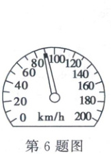6. 某辆汽车启动后,经过 $ 20 \, s $,速度表的指针指在如图所示的位置。由速度表可知 (