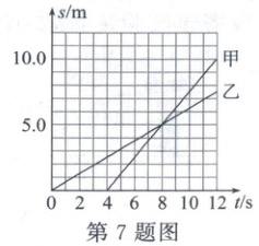 7. (2024·德州期中)甲、乙两人沿着平直的公路步行,他们运动的路程与时间的关系图像如图所示,关于甲、乙两人的运动情况,下列说法错误的是 (