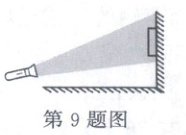 9. 如图所示,在暗室中用手电筒照射挂在白墙上的小镜子时,人在侧面观察被照射部分,则(