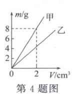 4. (2025·琼海期末)如图是甲、乙两种物质的 m-V 图像,下列说法正确的是(