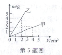 5. 如图所示是甲、乙两种物质的质量与体积的关系图像,下列说法正确的是(