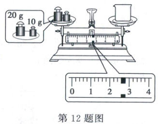 12. 某同学用托盘天平称量烧杯的质量。天平平衡后的状态如图所示。该同学称取烧杯的实际质量为