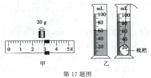 17. (8 分)小希家今年种植的五星枇杷获得了丰收。小希想知道枇杷的品质和密度是否有关,于是他和小明利用家庭实验室的器材测出了枇杷的密度。