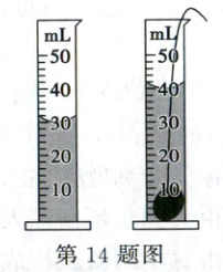 14. 为确定某种矿石的密度,用天平测量出一小块矿石的质量为 35.2 g。用量筒测小块矿石的体积如图所示,该小块矿石的体积为