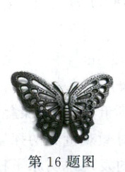 16. 如图所示,某城市的街道绿化带上放着一块漂亮的蝴蝶形铜板,它从一大块厚薄均匀的铜板上切下来,测得质量为 480.6 kg。从同一块铜板上切下长度和宽度分别是 20 cm、5 cm 的长方体铜板,测得质量为 1.78 kg。已知铜的密度为$ 8.9×10^3 kg/m^3,$则该铜板的厚度为