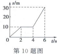 10. 某物体从地面上某一点出发沿直线运动,其路程随时间变化的关系图像($ s - t $ 图像)如图所示,对物体的运动情况进行分析,下列说法正确的是 (