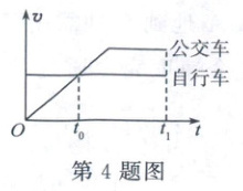 D.$0\sim t_{0}$时间内,公交车行驶的路程大于自行车行驶的路程