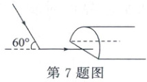 7. (5分)(2024·济南期中)小华想利用平面镜将太阳光束反射进一个水平山洞(如图所示),请在图中画出平面镜的位置。
