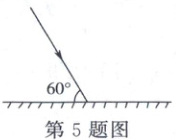 5. (5分)一束光照射到平面镜上,如图所示。请在图中画出反射光线并标出反射角的度数。