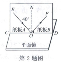 (选填“漫”或“镜面”)反射。(10)小明分别测出入射角和反射角均为40°,于是他得出了反射角等于入射角的结论。小明得出结论的过程是否合理,请说明理由: