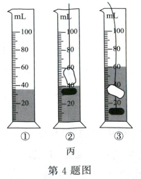 (3)因塑料块的密度小于水,小明在该塑料块下方悬挂了一铁块,按照如图丙所示的顺序,测出了该塑料块的体积,则该实心塑料块的密度是