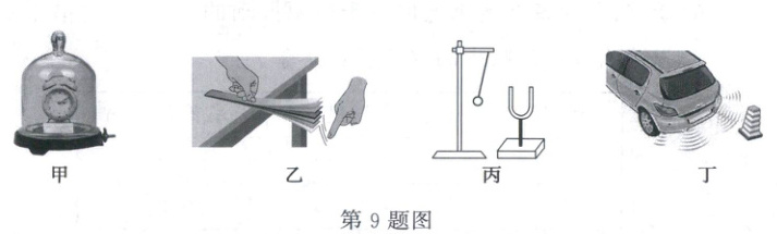 9. 如图所示是四个与声现象相关的情景,下列说法正确的是(