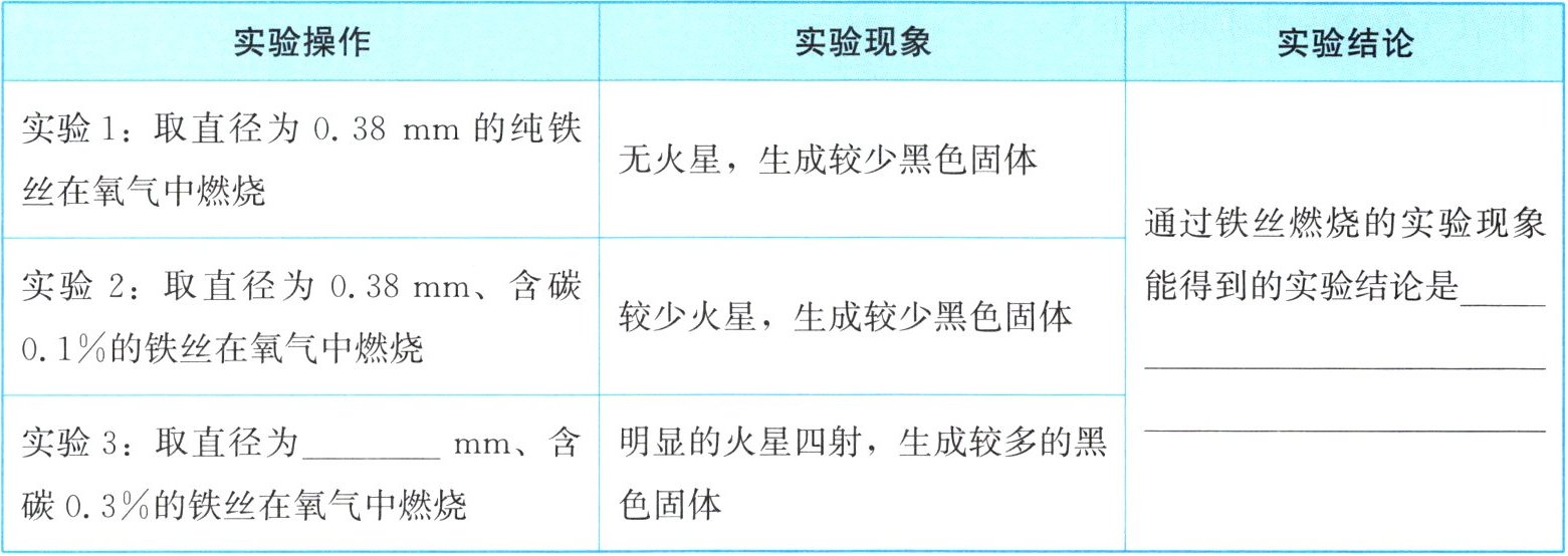 探究一:0.38;铁丝含碳量越高,燃烧时火星四射现象越明显。