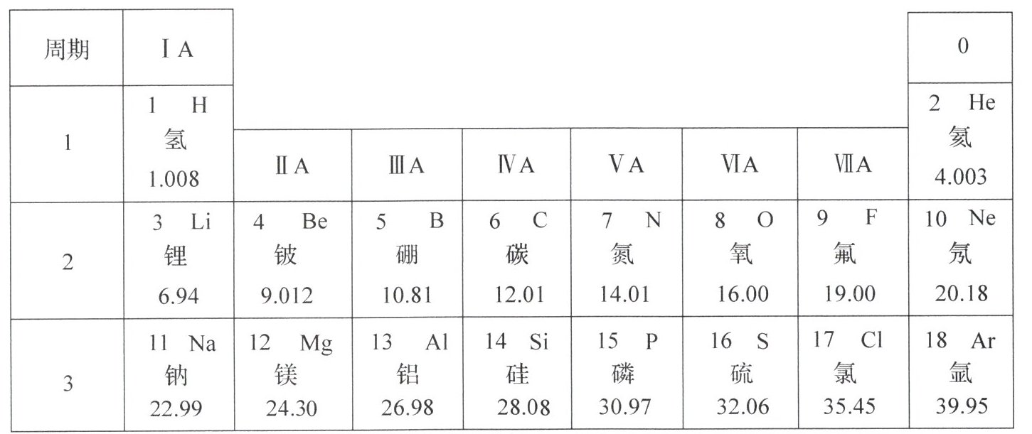 9. 元素周期表是学习和研究化学的重要工具,下面是元素周期表的部分内容,请根据下表回答问题。