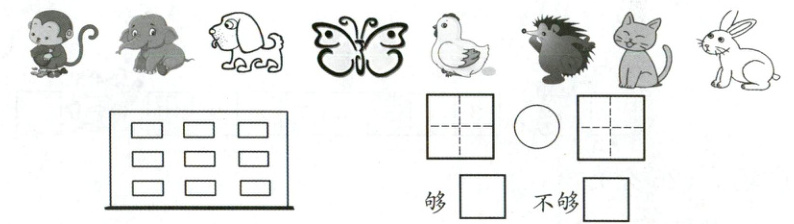 1. 小动物搬新家啦!每个小动物一个房间,房间够吗?在正确答案后面画“√”。(4分)