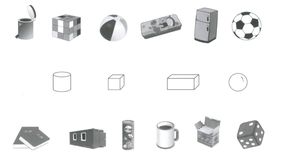 1. 长长方方的,有 6 个平平的面,至少有 2 种不同大小的面,这个图形是(