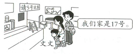 4. (生活情境)一个号一个桌,文文一家前面还有几桌在等待就餐?(5分)