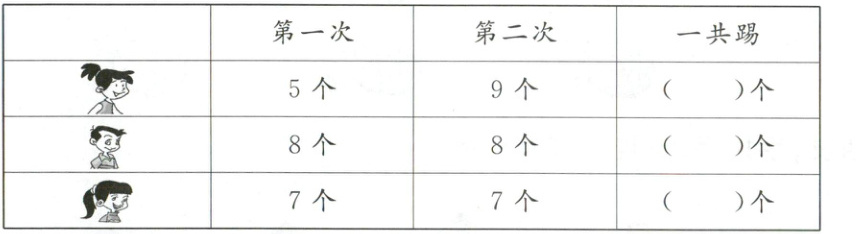 五、踢毽子比赛,算一算,填一填。(6 分)
