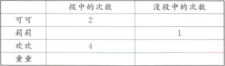 童童投中的次数比可可的多,比欢欢的少。将表格填写完整。