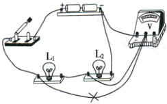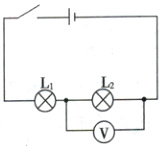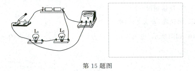 15. 如图所示是小晶所连的电路,她要测量小灯泡 $ L_{2} $ 两端的电压。