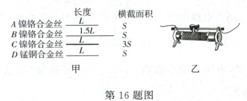 16. (12 分)小华在实验室中找到几根金属丝探究影响导体电阻大小的因素。