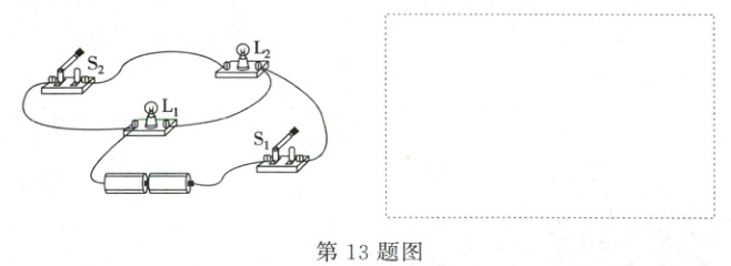 13. (6分)根据如图所示的实物图,在虚线框内画出对应的电路图。