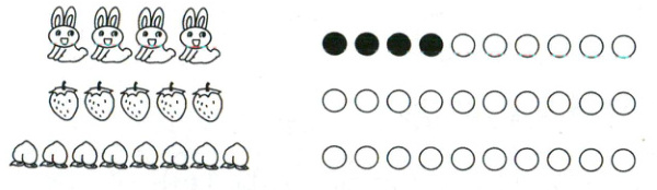 第一幅图中有3只兔子,所以在对应“兔子”的涂色数量上涂3个○;