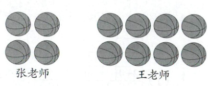 3.(开放题)如图,如果要使张老师的篮球个数和王老师的相同,可以怎么做?写出你的想法,并用算式表示出来。(5分)