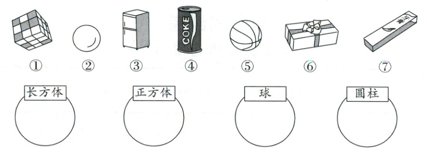 长方体: ③⑥⑦ 正方体: ① 球: ②⑤ 圆柱: ④