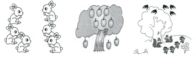 解:观察图可知,左边有$3$只小兔,右边有$3$只小兔,求一共有多少只小兔,用加法计算,即$3 + 3=6$(只)。
