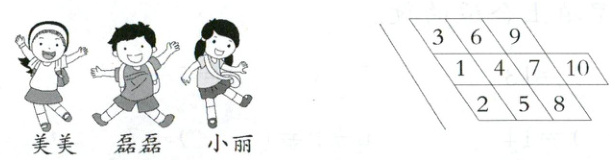 (分)(3)磊磊是第一名,美美是第二名,小丽是第三名。美美可能一共投中了(