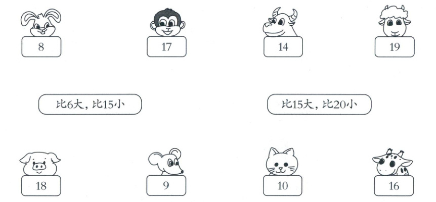 1. 8、14、9、10连“比6大,比15小”;17、19、18、16连“比15大,比20小”。