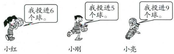 解:求小红和小刚一共投进几个球,用加法计算,即$6 + 5=11$(个)。